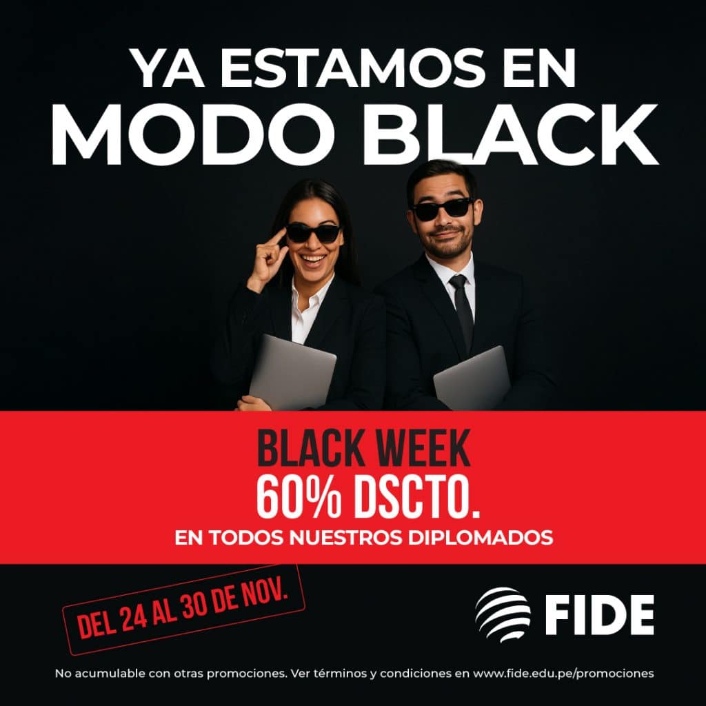 Términos y condiciones: 60% de dscto. válido sólo para PAGO TOTAL y 40% por PAGO EN CUOTAS en Diplomados y Diplomas de Especialización en modalidad virtual. No válido para cursos de corta duración (un mes a menos). Descuento no incluye en pago de certificación final o adicionales. Descuento no acumulable ni válido con otras promociones. Este beneficio no es retroactivo, es decir si el alumno no indica sobre este beneficio al momento de su inscripción, no podrá hacer uso del descuento. Válido para pagos con cualquier medio de pago desde el 24/11/2025 hasta el 30/11/2025.