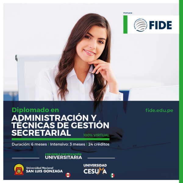 *La certificación emitida por FIDE, será expedida como Diplomado en Gestión Secretarial y Administración Moderna (600 horas).