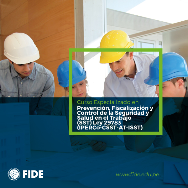 Conscientes de ello, FIDE organiza el Curso Especializado en Prevención, Fiscalización y Control de la Seguridad y Salud en el Trabajo (SST) – Ley 29783 (IPERCo-CSST-AT-ISST), el cual constará de 4 cursos obligatorios para el cumplimiento de la ley de seguridad y salud ocupacional de acuerdo a lo que establece la Ley 29783.