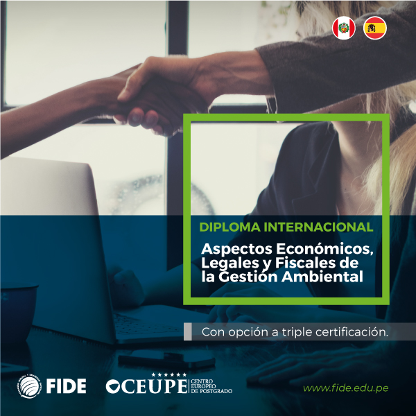 *La certificación emitida por FIDE, será expedida como Diplomado en Marco Económico y Legal en la Gestión Ambiental (300 horas).